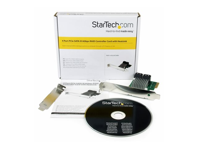 PCIe SATA 3 Controller Adapter (PEXSAT34RH) - Styreenhed til lagring (RAID) - 4 Kanal - SATA 6Gb/s - lavprofil - RAID 0, 1, 10, JBOD - PCIe 2.0 x2 - for P/N: ST521PMINT