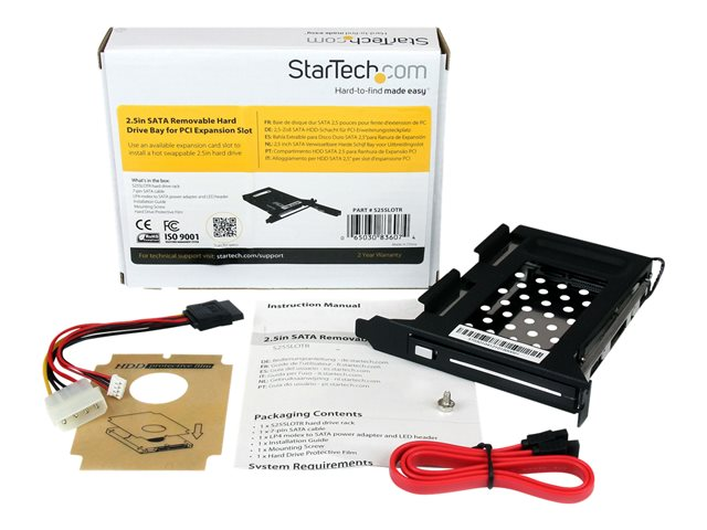 This unique design of the mobile rack enables you to use any available full profile expansion slot to mount a removable 2.5in SATA hard drive.