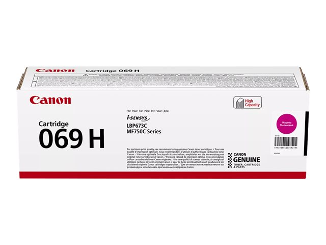 Brug 069H højtydende magenta tonerpatron sammen med din kompatible laserprinter for at garantere upåklagelige udskrifter. En fuld patron giver ca. 5.500 sider (ISO/IEC 19798), hvilket giver den lange levetid, du har brug for til at opfylde alle dine printkrav.