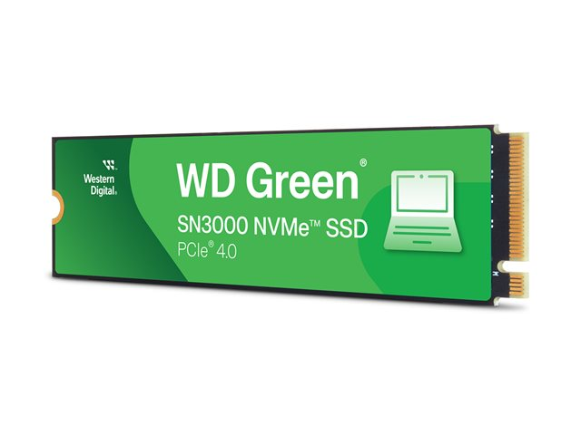 The WD Green SN3000 solid-state drive delivers a 2 TB storage capacity, providing space for your files, videos, and applications. Designed in a compact M.2 2280 form factor, this internal hard drive utilizes PCI Express 4.0 x4 (NVMe) for fast data transfer speeds, with an internal data rate of 5000 MBps for reading and 4200 MBps for writing. Experience reliability with MTTF of 1,750,000 hours and an endurance of 250 TB, ensuring the longevity of your data storage needs. Functionality is further supported by its wide operating temperature range, suitable for various environments.
