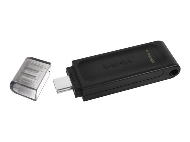 Kingstons DataTraveler 70 er et bærbart og let USB-C-flashdrev med USB 3.2 Gen 1-hastigheder. Det er designet til at blive brugt med kompatible USB-C-enheder som notebooks, laptops, tablets og telefoner.