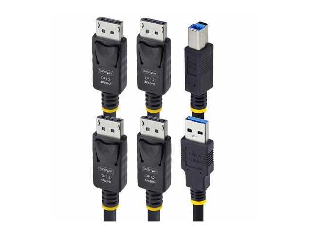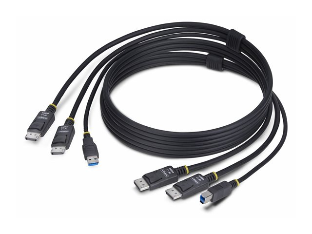 The 6ft (1.8m) Dual-DisplayPort and USB 5Gbps KVM Cable from StarTech.com provides a seamless connection for your keyboard, video, and mouse, supporting functionalities for performance. With data transfer speeds of up to 5 Gbps and compatibility with USB 3.2 Gen 1 and DisplayPort 1.2, this cable ensures high-quality data transmission and video output. It supports 4K resolution at 60 Hz and HDR10, making it suitable for high-definition displays and rich color experiences.