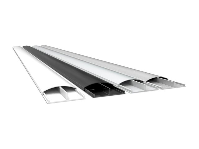 The M Universal Cable Cover Super Slim is a super high quality aluminum trunking system with clean Nordic design and the solution for hiding all surface wiring or pipe work and suitable for SCART, HDMI, CRT, VGA and other mains leads. The width and height is optimized to match the ultra flat screens. Most often these super thin TVs are based on LED or super thin LCD or plasma technology.