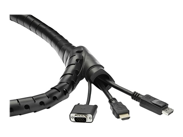 The flexible and expandable cable cord organizer will hold multiple cables and gauges, from thin phone chargers to thick power cords. Create a tidy workspace in minutes to keep your cables neat, and still accessible, within the attractive coiled sleeve. It's a great way to provide a neat appearance for cables and equipment wiring in offices, lobbies, boardrooms, and customer-facing areas.