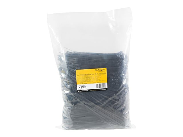 StarTech.com 15cm(6") Cable Ties, 3mm(1/8") wide, 39mm(1-3/8") Bundle Diameter, 18kg(40lb) Tensile Strength, Nylon Self Locking Zip Ties w/ Curved Tip, 94V-2/UL Listed, 1000 Pack, Black