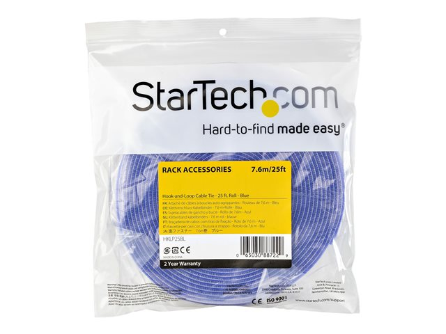StarTech.com 25ft Hook and Loop Roll, Cut-to-Size Reusable Cable Ties, Bulk Industrial Wire Fastener Tape / Adjustable Fabric Wraps Blue / Resuable Self Gripping Cable Management Straps