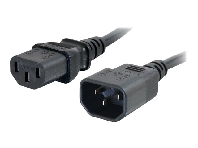 - Design: female (C13) connector plugs directly into device, and male (C14) connector plugs into existing cable