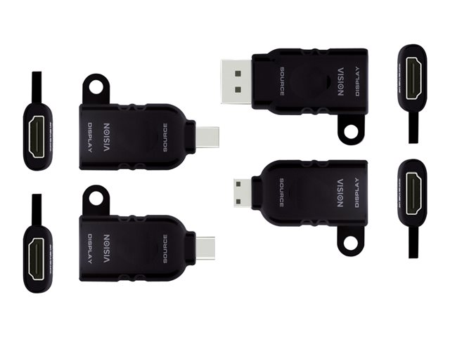 The VISION Professional adapter kit is a solution for professionals seeking reliable and versatile connectivity options. With its comprehensive range of adapters, including mini HDMI Type-C, Mini DisplayPort, DisplayPort, and USB-C, this kit ensures compatibility with a wide array of devices. Gold-plated connectors provide a durable connection and high-quality signal transmission for both audio and video. Whether for presentations, home entertainment, or professional setups, this video / audio / data cable kit offers the flexibility and quality needed for a seamless experience. Its construction is designed to minimize signal loss and interference, making it a reliable choice for any professional.