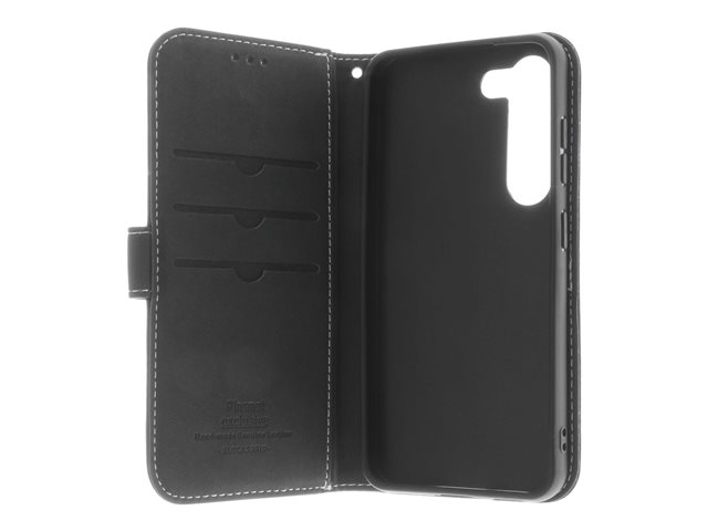 ægte læder, papir, polyurethan, karton, bomuld, aluminumfolie, bronze, termoplastisk polyuretan (TPU) - sort - for Samsung Galaxy S23+