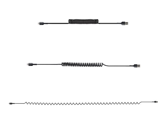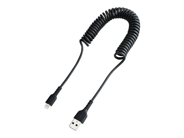 StarTech.com 1m (3ft) USB to Lightning Cable, MFi Certified, Coiled iPhone Charger Cable, Black, Durable and Flexible TPE Jacket Aramid Fiber, Heavy Duty Coil Charging Cable