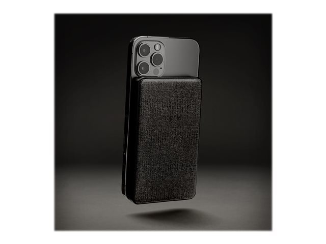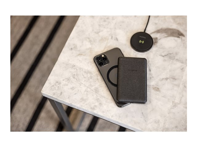 Snap+ juice pack mini indeholder et internt batteri med 5.000 mAh, der vidner om mophies store engagement i optimering af mobil strøm. Brug USB-C-input-/outputporten til hurtig genopladning af snap+ juice pack mini eller op til 12 W opladning1 af en anden enhed. Det magnetiske område sikrer nøjagtig placering, så opladningen begynder, så snart der er kontakt, og den integrerede LED-strømindikator med fire lys viser opladningsstatus og aktuel batterilevetid.