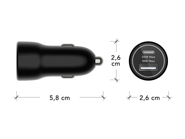 - Leverer op til 30 W strøm til hurtig opladning