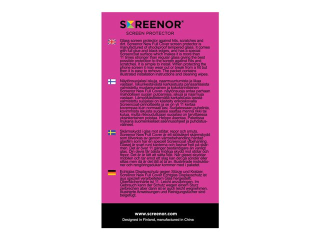 As the screen protector is manufactured of glass, when protecting the screen it may get broken from hardest hits but then it is easy to remove safely. The packet contains the screen protector, illustrated instructions for an easy successful installation and cleaning wipes. Screenor Premium Tempered screen protectors are manufactured of high-quality Japanese materials.