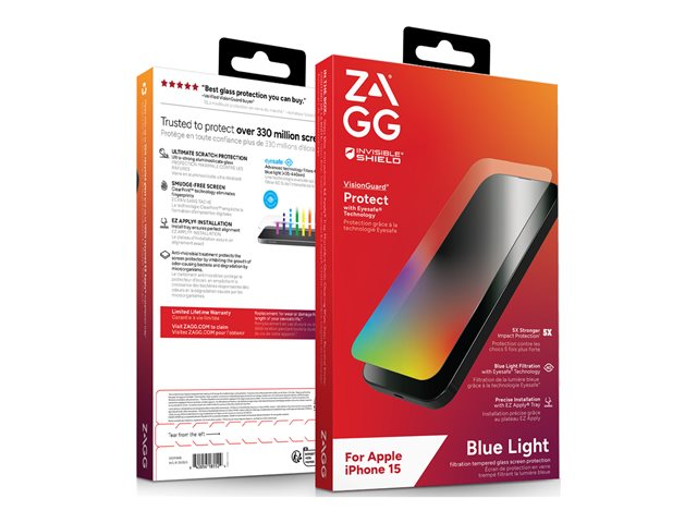 Blålysfilter og antimikrobiell behandling beskytter skjermbeskytteren din. InvisibleShield Glass Elite VisionGuard har fått en antimikrobiell behandling som beskytter skjermbeskytteren ved å hemme veksten av bakterier som lukter og beskytter mot nedbrytning fra mikroorganismer. Digital anstrengelse på øynene fra langvarig eksponering for enhetsskjermer kan forårsake for tidlig aldring av øynene, tørre og irriterte øyne, søvnforstyrrelser og tåkesyn. Det beskyttende Eyesafe-laget i Glass Elite VisionGuard filtrerer skadelig høyenergisk synlig lys fra skjermen på mobiltelefonen. Eyesafe-teknologi filtrerer 60 % av maksimalt skadelig blått lys ved 435 - 440nm, og beskytter mot effektene av overeksponering for blått lys med høy energi. Dette herdede filtreringsglasset er 5 ganger sterkere enn tradisjonell skjermbeskyttelse og mer ripebestandig. ClearPrint teknologi er en unik overflatebehandling - brukt eksklusivt av InvisibleShield - som skjuler synligheten av fingeravtrykkene på skjermbeskytteren din. Denne oleofile prosessen er utviklet av NBD Nanotechnologies, og den sprer oljer fra fingeravtrykk så tynt på overflaten at den lar lys passere gjennom oljen, noe som gjør fingeravtrykk nesten usynlige. Glass Elite VisionGuard har EZ Apply-fliker og leveres med et installasjonsbrett for å sikre en nøyaktig justering.