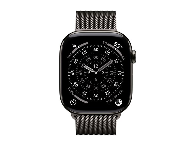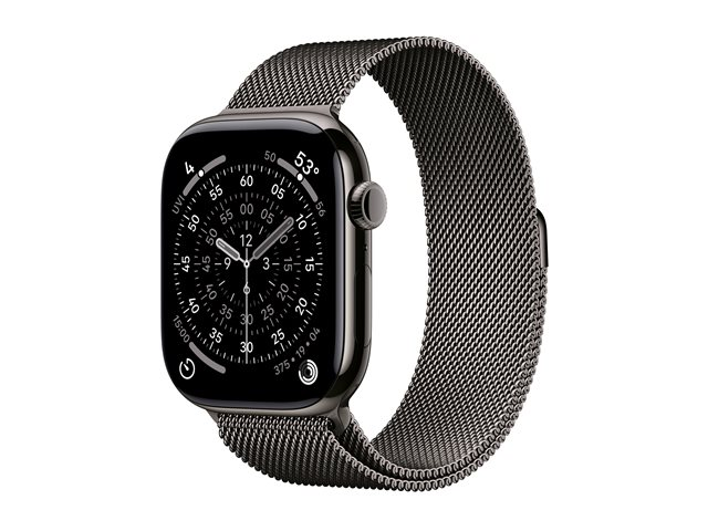 46 mm - skifer titanium - smart ur med milanesisk løkke - rustfrit stålnet - skifer - båndstørrelse: M/L - 64 GB - LTE, Wi-Fi 4, UWB, Bluetooth - 5G - 43.1 g