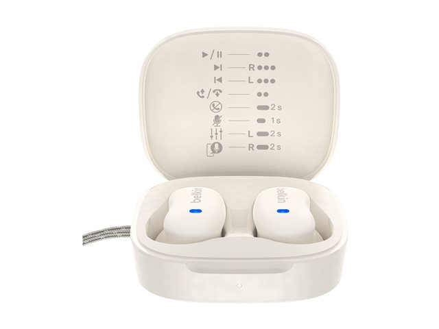 Elevate audio experiences with the Belkin SoundForm Anywhere true wireless earphones, designed for convenience and enhanced sound quality. Featuring Environmental Noise Cancellation (ENC), these earphones deliver immersive stereo sound, making them suitable for portable electronics, phones, computers, and more. With MultiPoint Technology, they allow connection to two devices simultaneously, ensuring seamless transitions between calls and music.