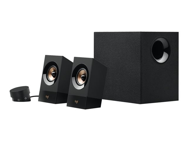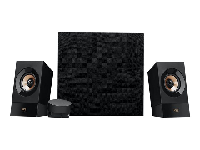 Slip imponerende lyd der fylder rummet, løs med højtalere der er designet til at opsluge dig i lyden fra musik, spil eller film. Z533-højtalere til pc'en har to fuldtone-højtalerenheder på 2,5" med faseafretter og udgangseffekt på 60 Watt. Du kan tilslutte op til tre enheder på samme tid. Du kan bruge den som PC-højtaler, og du kan også tilslutte en tablet-PC, smartphone, spillekonsol eller et TV via 3,5-mm-stikket eller RCA-indgangsstikket. Der er et 3,5-mm indgangsstik på fjernbetjeningen til tilslutning af mobilenheder. Der er et 3,5 mm og et RCA-indgangsstik på bagsiden af subwooferen til tilslutning af PC'er, TV eller spillekonsoller - PlayStation 3 eller Xbox 360. Du får fyldig, dynamisk bas med den fremadrettede subwoofer så du kan mærke hver eneste rytme i musikken. Den tragtformede port tube på subwooferen forbedrer lave frekvensgange. Betjening lige ved hånden giver den bedste oplevelse med PC-højtalerne. Du kan placere fjernbetjeningen med ledning i nærheden så du nemt kan tænde/slukke og justere lydstyrken samt bassen. Ud over knapperne har fjernbetjeningen et 3,5 mm indgangsstik så du nemt kan tilslutte smartphonen, tablet-PC'en eller MP3-afspilleren. Du kan slutte hovedtelefonerne til fjernbetjeningen og tale, spille spil eller lytte til musik uden at genere dem omkring dig. Der er et praktisk stik til hovedtelefoner på fjernbetjeningen.