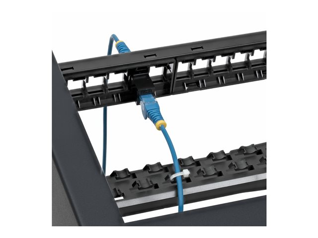 - Included cable management bar simplifies organization