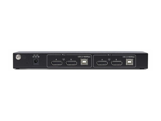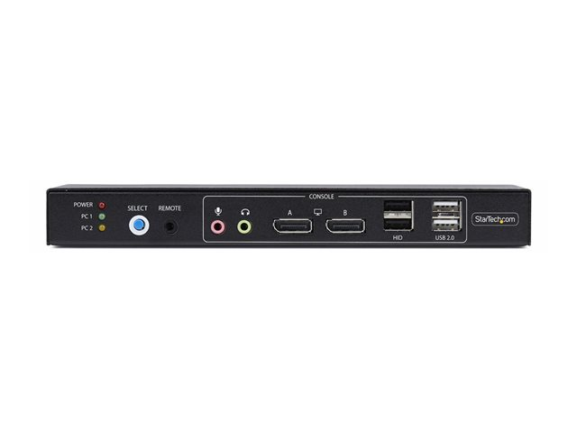 Built with convenience in mind, this switch includes multiple interfaces, such as USB 2.0 input and output, along with headphone and microphone outputs. Its aluminum and steel housing provides durability, while the built-in buzzer and LED status indicators simplify operation. Additionally, the device incorporates ESD protection against electrical surges, making it a reliable choice for any desktop setup. Featuring a user-friendly push button and hotkeys for quick access, the StarTech.com KVM switch helps enhance productivity.