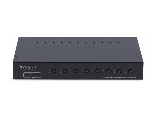 The StarTech.com 8-Port HDMI KVM Switch w/1U Rack Mount Kit is designed for environments that require seamless control over multiple systems. With a maximum supported video resolution of 3840 x 2160 and a KVM V-Sync rate of 60 Hz, this switch delivers high-quality visuals for enhanced productivity. The inclusion of a rack mounting kit makes it suitable for organized installations in server rooms or office setups, maximizing space efficiency. Featuring 8 ports and support for 5.1 channel audio, this switch caters to diverse multimedia needs while enabling easy switching via pushbutton or hotkey options. With an operational power consumption of just 36 watts, it combines power efficiency with reliable functionality.