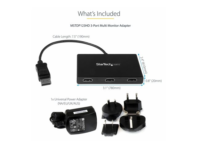 Multi Stream Transport (MSTDP123HD) - Video-/audiosplitter - 3 x HDMI - desktop - AC 100/240 V