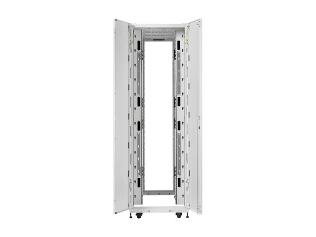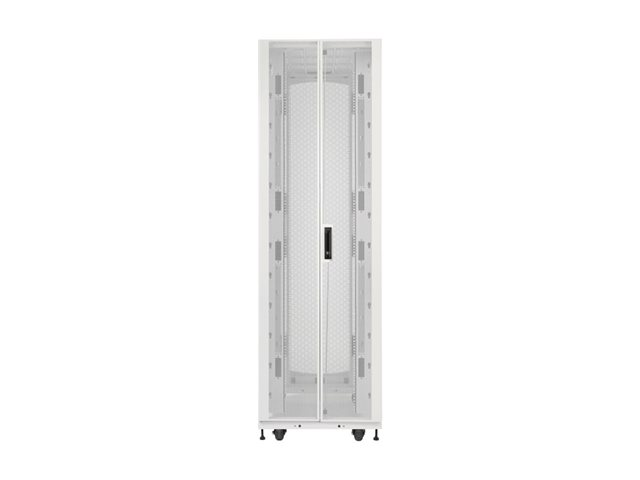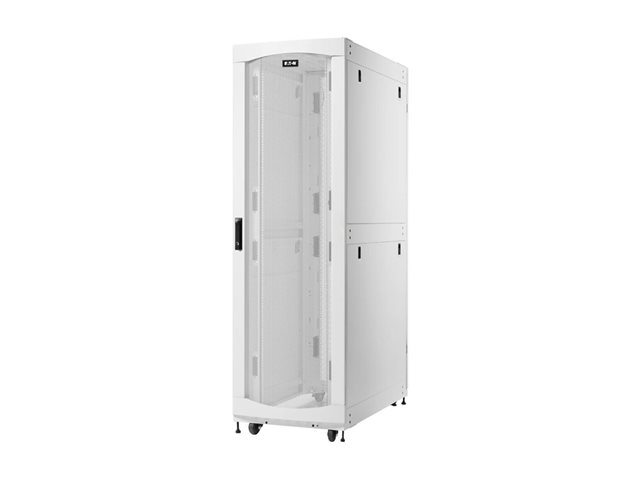 Dette kabinet har fire lodrette monteringsskinner, der understøtter en vægtgrænse på 2268 kg, hvilket giver rigelig plads og støtte til serverudstyr. Overholdelse af flere standarder, herunder EIA-310-E og UL 2416, sikrer pålidelighed og sikkerhed i alle installationer. Med en komplet pakke, der inkluderer sidepaneler, låse, burmøtrikker og nylon skiver, er Eaton SmartRack-kabinettet designet til at gøre det nemt at administrere serverinfrastrukturen.