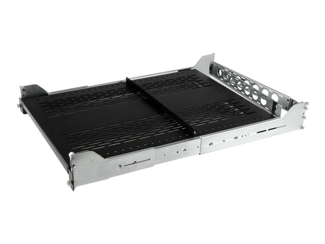 Offering a weight capacity of up to 50 lbs (22.7 kg), this sliding rack shelf features a ventilated, cold-rolled steel construction for increased airflow and durability in your server room or wiring closet installations.
