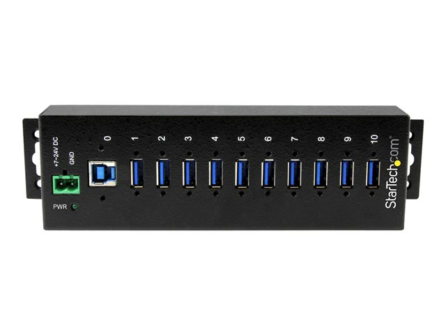 Metal Industrial USB-A Hub with ESD & Surge Protection - Din Rail, Wall or Desk Mountable - TAA Compliant USB Expander Hub (ST1030USBM) - Hub - 10 x SuperSpeed USB 3.0 - DIN monterbar på skinne - DC strøm - for P/N: ITB20D3250, USB312SAT3CB, USB315CB2M, USBLT1MWS, USBLT2MBR, USBLTM1MBK, USBLTM1MWH
