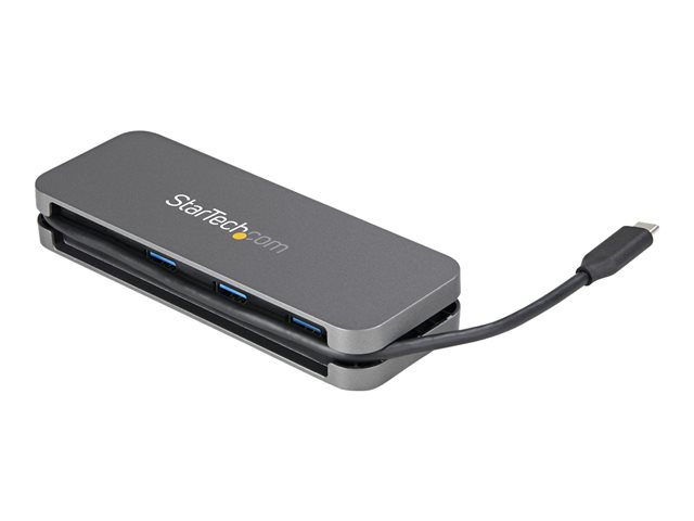 - Lightweight travel hub with durable plastic housing, 11"" (28 cm) attached USB-C cable