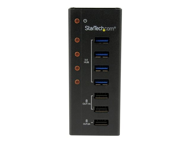Add 4 USB 3.0 hub ports, plus 3 dedicated USB charging ports (7 total) through a single USB 3.0 host connection. The ST4300U3C3 USB 3.0 Hub enables simultaneous data hub and USB charging functionality by adding three dedicated USB charge ports, as well as four USB 3.0 data ports, for a total of seven ports, all through a single USB 3.0 host connection.