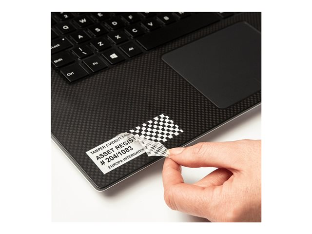 Når TZe-SE5 sikkerhedstape fjernes, efterlader labelen et skakternet mønster på genstanden og på tapen. Det gør det nemt a t opdage, om en label er blevet fjernet fra en genstand, og forhindrer, at labelen anvendes andetsteds.