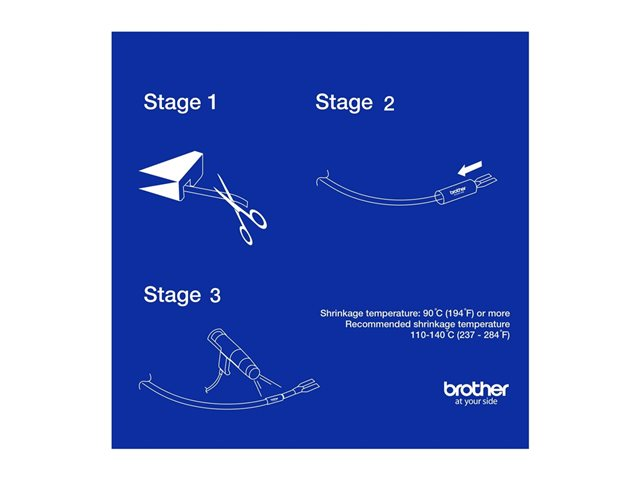 Når det trykte rør placeres over et kabel og opvarmes med en varmepistol, krymper røret sammen og griber godt fat om kablet. Der er ikke brug for klæbemiddel, hvilket sikrer, at krympeslangen ikke løsner sig fra kablet, selv i varme omgivelser.