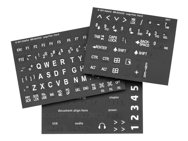 The HP Accessibility Kit is designed to remove barriers between users and their Enterprise MFPs and scanners for a more accessible experience for everyone, everywhere. The three-in-one solution combines customized Braille and tactile adhesives, an access handle, and the BigKeys LX keyboard so users can work with ease and to their full potential.