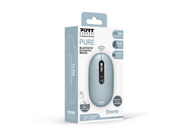 PORT Designs PURE COLOR-musen tilbyder problemfri trådløs forbindelse, hvilket gør den til et velegnet tilbehør til både højre- og venstrehåndede brugere. Denne mus er udstyret med genopladelig lithium-teknologi og har en kapacitet på 500 mAh, hvilket sikrer langvarig brug uden hyppig opladning. Med optisk bevægelsesdetekteringsteknologi med en opløsning på 3200 DPI giver musen præcision og reaktionsevne til forskellige opgaver.