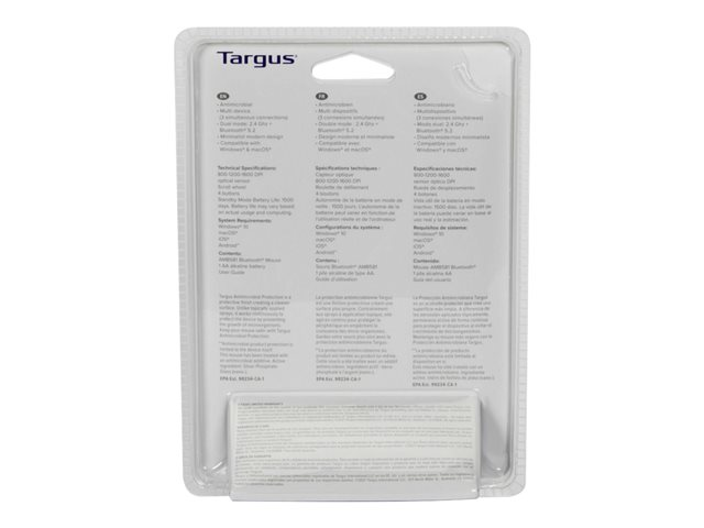 For an added benefit, this mouse features Targus DefenseGuard Antimicrobial Protection, which creates a cleaner surface and works continuously to protect the mouse by preventing the growth of microorganisms. Unlike topically applied sprays, DefenseGuard mice are treated with an antimicrobial additive that does not wear off and lasts for the life of the product.