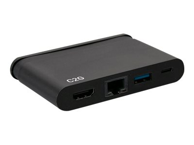 Produktbeskrivelse C2G USB C Dock with HDMI, USB, Ethernet, USB C & Power Delivery up to 100W - dockingstation - USB-C / Thunderbolt 3 - HDMI - 1GbE Produkttype Dockingstation Docking-interface USB-C / Thunderbolt 3 Videointerfacer HDMI Dimensioner (B x D x H) 9 cm x 6 cm x 1.55 cm Vægt 66 g Farve Sort Netværk Gigabit Ethernet Producentgaranti 5 års garanti -
