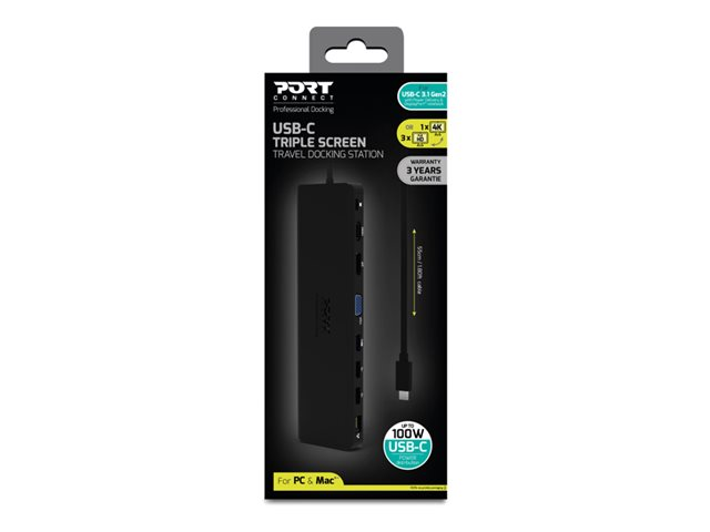 - Understøtter tilslutning af tre skærme