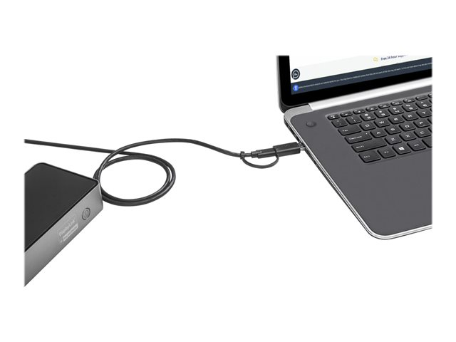 - Universal docking station: hybrid dock includes combo 2-in-1 USB-C/USB-A USB-IF Certified host cable; secure screw lock on dock & cable prevents accidental disconnect & missing cable; TB3 compatible