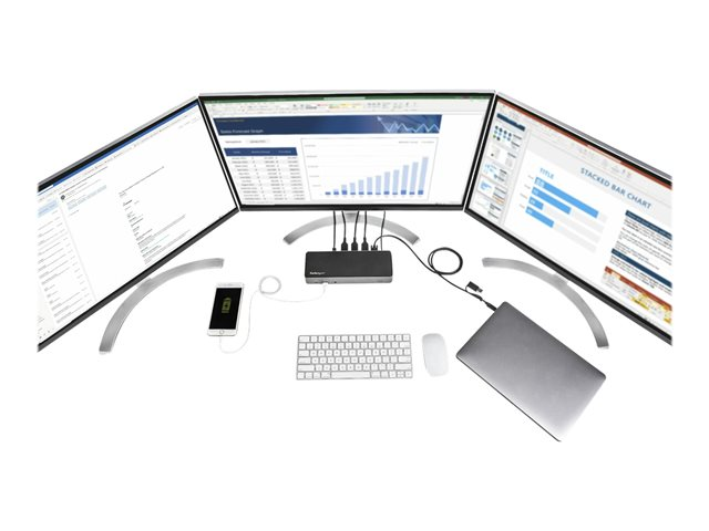 StarTech.com USB-C & USB-A Dock, Hybrid Universal Triple Monitor Laptop Docking Station w/ DisplayPort & HDMI 4K 60Hz, 85W Power Delivery, 6x USB Hub, Ethernet, Audio, USB 3.1 Gen 2 10Gbps
