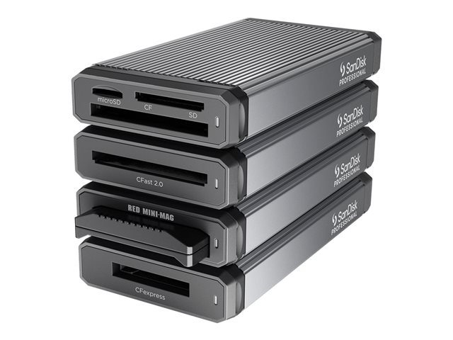 Plug into performance with the PRO-READER Multi Card reader. The aluminum core keeps your card cool so you can achieve maximum transfer speeds for accelerated offloading to minimize downtime1. With USB-C for super-fast data transfers, this reader plays well with compatible Type-C iPads, G-RAIDs or computers. Pair this PRO-READER with compatible SanDisk CF, SD and microSD cards for reliable and fast offloads.