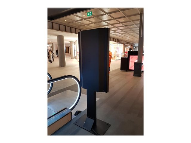 Gulvstandens glaskabinet er designet til at tilbyde forskellige kabinetter. HI-ND bruger et trykt glas på søjlen under displayet. Denne funktion giver en eksklusiv følelse. Perfekt i offentlige rum og butiksvinduer. Kun portrættilstand tilgængelig.