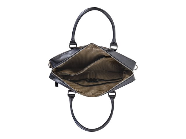 • The interior features multiple storage compartments including a padded section to protect your PC or MacBook