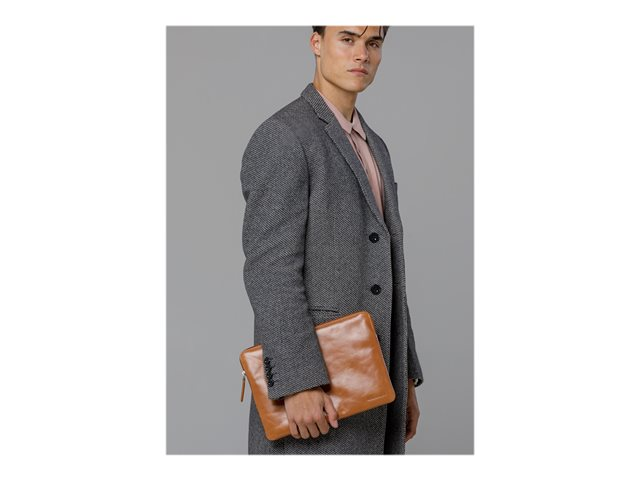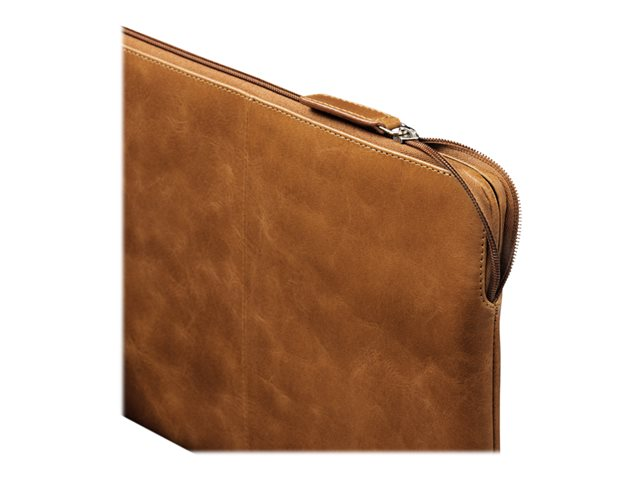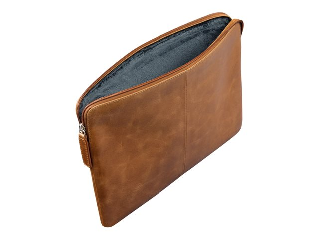 Dette sleeve er håndlavet af fuldkornslæder, der vil udvikle en smuk patina ved brug, og er fremstillet af bæredygtige materialer med lang levetid for dem, som ønsker at tilføje stil, beskyttelse og organisering til deres hverdag.