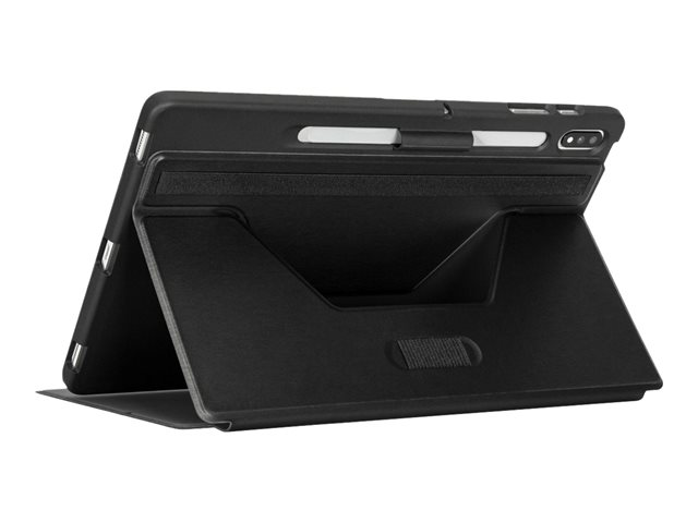 A simple flip transforms your case into a sturdy stand for comfortable typing. Flip again for easy viewing with virtually infinite viewing angles. Enjoy added ease and convenience with the elastic stylus holder and S Pen charging port, keeping your S Pen ready to go or your stylus close at hand. Precision cutouts offer easy access to your controls, ports, and camera lenses. Even your audio gets a boost with dedicated speaker ports.