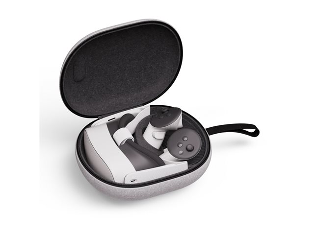 This small carrying case holds your Quest 3/3S headset as well as your Touch Plus controllers, soft head strap, charging cable and power adapter. Take your Quest on all your adventures with lightweight case that fits easily into your backpack or carry-on. With a felt shell, contoured plastic inner compartments and an integrated mesh pouch, it'll keep your gear secure and organized wherever you go. An improved, snag-free zipper design gets you in and out of the case with ease.