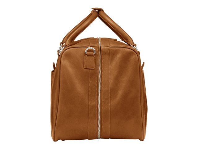 • Double leather carry handles fasten with a press stud tab