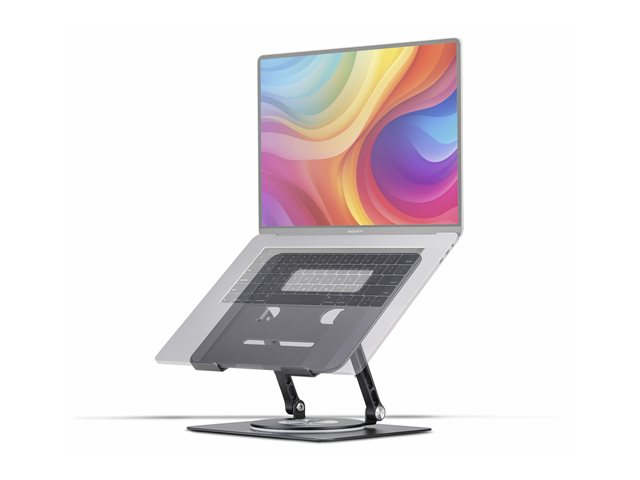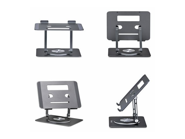 With features like tilt adjustment and 360° swivel capability, users can customize their setup to achieve the perfect viewing angle. The stand is foldable, making it easy to store and transport when not in use. Additionally, the passive airflow design contributes to better heat dissipation, and the anti-slip pads provide stability, ensuring that your device remains securely in place even during use. With a max load weight of 5 kg, this versatile laptop stand caters to various devices and enhances the overall ergonomic experience.