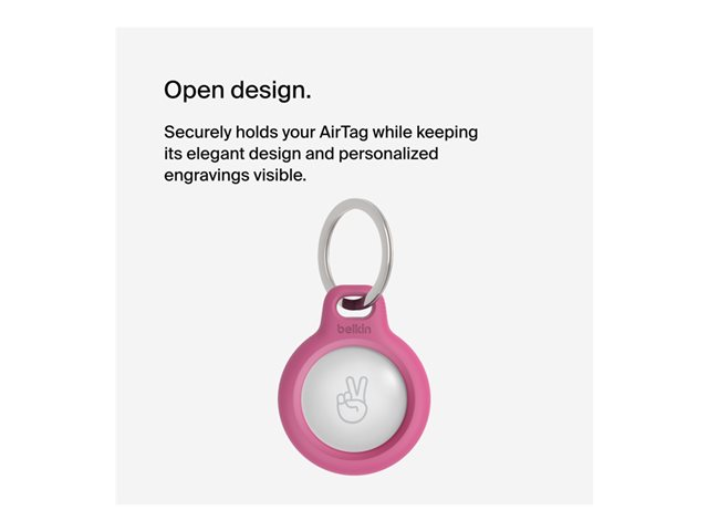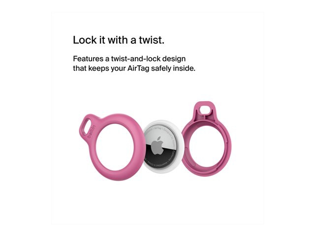 An innovative twist-and-lock design securely holds your AirTag while raised edges help protect it against scratches. Choose from four colors that complement your AirTag while keeping it on full display.