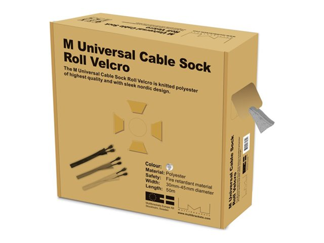 The M Universal Cable Sock Velcro is knitted polyester of highest quality and with sleek nordic design. The M Universal Cable Velcro Socks hold any type of cables for example scart, HDMI, CRT, VGA and other main leads and expands easily.