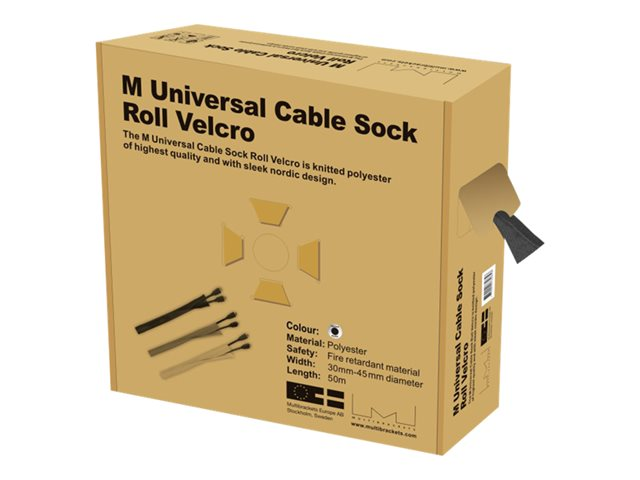 The M Universal Cable Sock Velcro is knitted polyester of highest quality and with sleek nordic design. The M Universal Cable Velcro Socks hold any type of cables for example scart, HDMI, CRT, VGA and other main leads and expands easily.